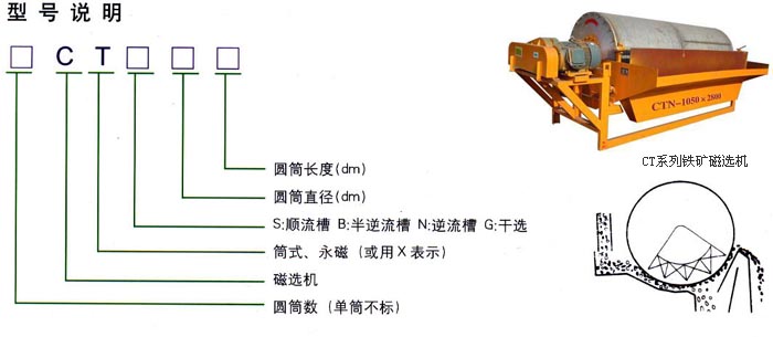 該類設(shè)備利用永磁磁系所產(chǎn)生的磁力,將礦漿中的磁性礦物吸引到圓筒表面上來,并隨著圓筒一起旋轉(zhuǎn),待脫離磁場作用后在重力、(刮板)作用下,排出機(jī)外,而非磁性物料從尾礦口排除,完成分選作用。