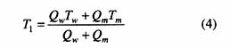 由于DG600-240型給水泵密封水設(shè)計(jì)源于凝結(jié)水母管,而回水的一部分引入前置泵進(jìn)口(回除氧器),使前置泵入口水溫t1有所降低,按下式求出: