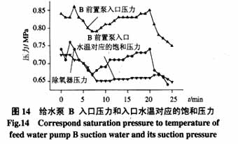 13、圖 14。從中可見,A、B泵ps總是低于入口壓力p1=Hg+Pd-v12/2g-vDp,它門的差值大于前置泵的必須汽蝕余量Hr,表示前置泵不會(huì)發(fā)生汽化,更不會(huì)汽蝕或?qū)е聰嗔泄r。但低溫的凝結(jié)水未經(jīng)加熱器的加熱,直接引入給水,降低了整個(gè)機(jī)組循環(huán)熱效率,犧牲效率換取了給水泵的安全。