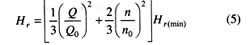 (3)FA1D56前置泵為一級(jí)雙吸葉輪,揚(yáng)程100m,與單吸泵相比,汽蝕比轉(zhuǎn)數(shù)提高1.414倍,抗汽蝕性能好,Hr=3.8m。應(yīng)當(dāng)說,只要前置泵不發(fā)生汽蝕,主泵就不會(huì)發(fā)生汽蝕,前置泵為定速泵,主泵轉(zhuǎn)速通過液力偶合器轉(zhuǎn)速可變,暫態(tài)過程抗汽蝕性能進(jìn)一步提高。在額定工況Q0、n0下最小必須汽蝕余量為Hr(min),則在工況Q、n下,必須汽蝕余量為: