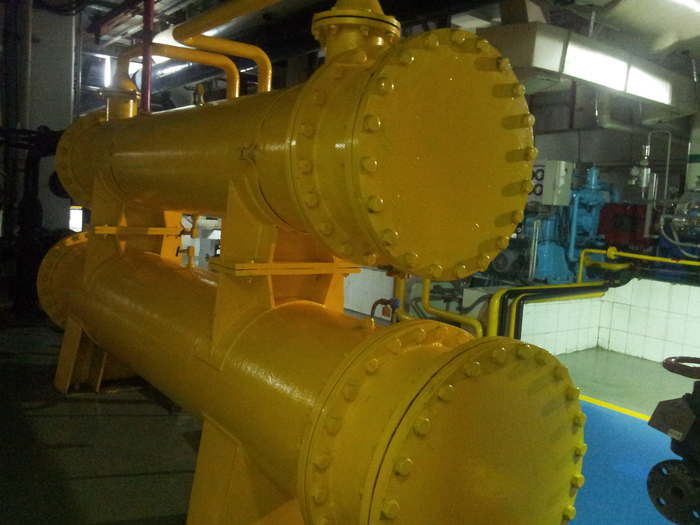 齒輪油冷油器清洗,冷油器清洗 冷油器怎么清洗 齒輪油冷油器清洗 冷油器清洗公司◆◆◆連云港市宏慶電力輔機(jī)開發(fā)有限公司◆◆◆【連圣華康牌】冷油器膠球清洗---冷油器膠球清洗裝置---膠球清洗冷油器冷卻管水垢,消除冷油器冷卻管水垢有著豐富的經(jīng)驗。有專業(yè)設(shè)計安裝隊伍,從事冷油器--熱交換器冷卻管清洗數(shù)十年。冷油器是降低潤滑油和抗燃油溫度的表面式熱交換器。工業(yè)設(shè)備上的冷油器大多采用循環(huán)水冷卻器,使用后油冷卻器冷卻管結(jié)水垢后,換熱面積冷卻效果大幅下降,導(dǎo)致齒輪油---潤滑油油---汽輪機(jī)油---空壓機(jī)油溫快速升高,導(dǎo)致齒輪油---潤滑油油---汽輪機(jī)油---空壓機(jī)油老化+變質(zhì)+失效。增大了設(shè)備磨損,通過化學(xué)方法進(jìn)行冷油器清洗除水垢,工緒繁雜,增加了工人的勞動強(qiáng)度,【連圣華康牌】冷油器膠球清洗裝置清洗冷油器冷卻管安全干凈,效果顯著,冷卻器清洗除水垢后,冷卻器油溫正常,消除了油前老化變質(zhì)導(dǎo)致設(shè)備磨損的隱患。選用【連圣華康牌】冷油器膠球清洗裝置,訂貨后由技術(shù)部門派技人員指導(dǎo)客戶自行進(jìn)行冷油器膠球清洗裝置安裝,并對客戶指導(dǎo)調(diào)試,設(shè)備安全穩(wěn)定運(yùn)行,效果好�!具B圣華康牌】冷油器膠球清洗裝置凈化度高。 ★★【連圣華康牌】冷油器膠球清洗裝置的組成: ①精密過濾器/精密濾水器,主要用于冷卻水的雜質(zhì)過濾。 ②收球器/收球網(wǎng),主要是把冷卻水中的膠球攔截下來回收至蓄球器。 ③蓄球器/裝球室,主要用途是蓄球--收球和觀察膠球的運(yùn)行情況。 ④膠球泵/膠球輸送泵,主要用途是把膠球投送至冷卻水中,讓膠球?qū)鋮s管水垢進(jìn)行有效沖洗。 ⑤球閥,主要為投球和收球隔斷水源。 冷凝器清洗工藝流程 ★★★【連圣華康牌】冷油器膠球清洗裝置的工作原理 冷油器膠球清洗裝置選用合適的膠球--剝皮膠球--硅化膠球--金鋼砂膠球,將膠球從裝球室手孔處投入裝球室內(nèi),投球數(shù)量為主機(jī)[冷凝器|蒸發(fā)器]冷卻水管數(shù)的10%左右。先打開收球網(wǎng)的收球閥和投球閥,關(guān)閉放水閥,然后啟動膠球泵,再打開裝球室上的排氣閥,排完裝球室內(nèi)的空氣,關(guān)閉排氣閥,當(dāng)冷卻水正常運(yùn)行時慢慢打開裝球室的切換閥,切換閥不宜過猛切換,過猛切換會導(dǎo)致[投入球數(shù)量過多]收球網(wǎng)堵球。膠球在冷卻水流帶動下進(jìn)入凝汽器水室。膠球在冷卻水進(jìn)出口壓力差的作用下跳動洗刷冷卻管內(nèi)泥沙污物,對冷卻管內(nèi)進(jìn)行一次有效抹擦,使冷卻管內(nèi)壁泥沙污垢隨著水流帶出,膠球經(jīng)冷卻水的帶動下進(jìn)入收球網(wǎng),收球網(wǎng)將膠球分離出來,膠球泵將膠球重新吸入裝球室,按此規(guī)律往復(fù)循環(huán)對中央空調(diào)主機(jī)[冷凝器|蒸發(fā)器]冷卻水管進(jìn)行連續(xù)清洗,運(yùn)行時間一般控制在≥20分鐘 。